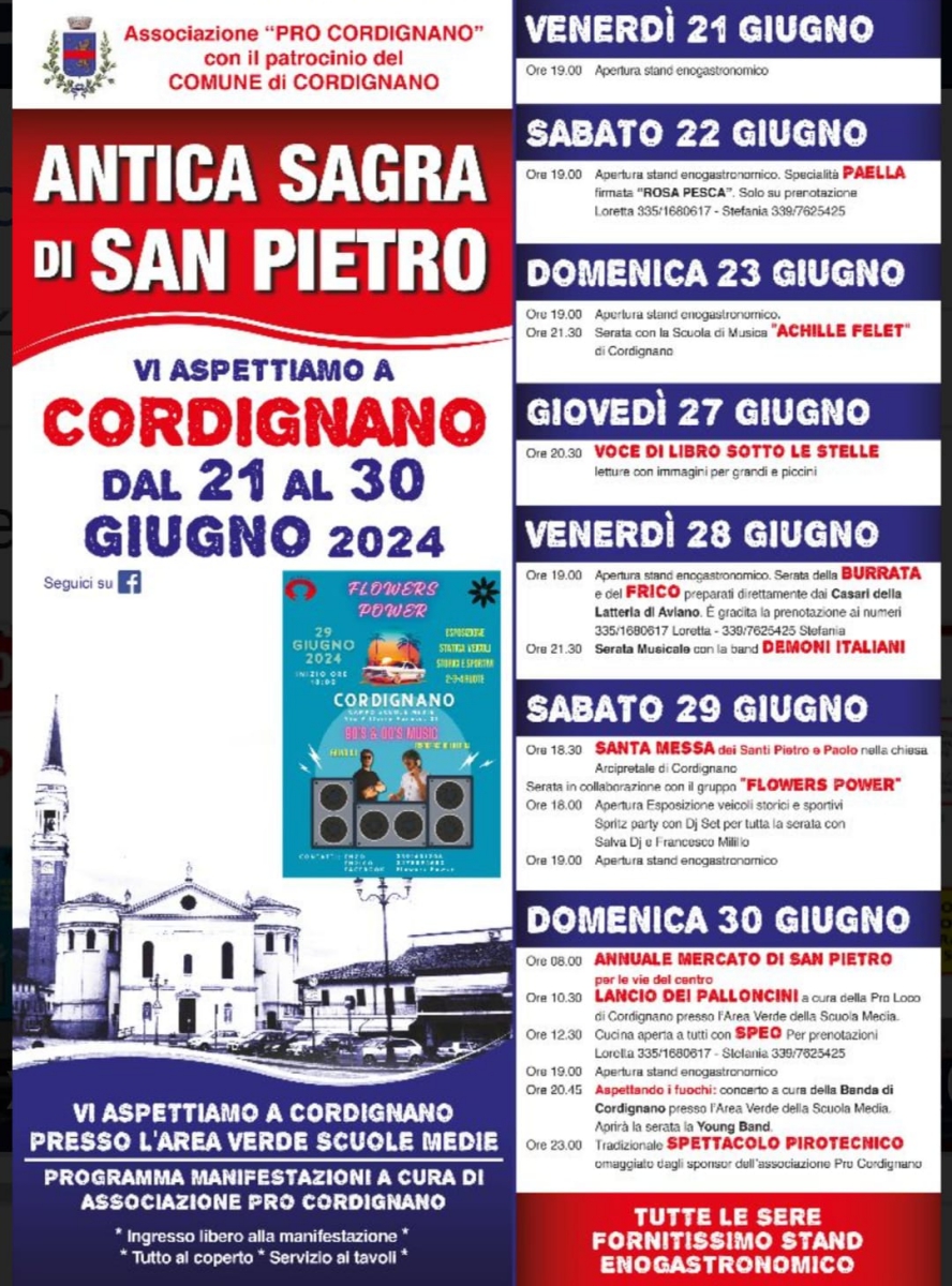 La Pro Cordignano APS con il patrocinio del Comune di Cordignano ha organizzato l’Antica Sagra di San Pietro 2024.