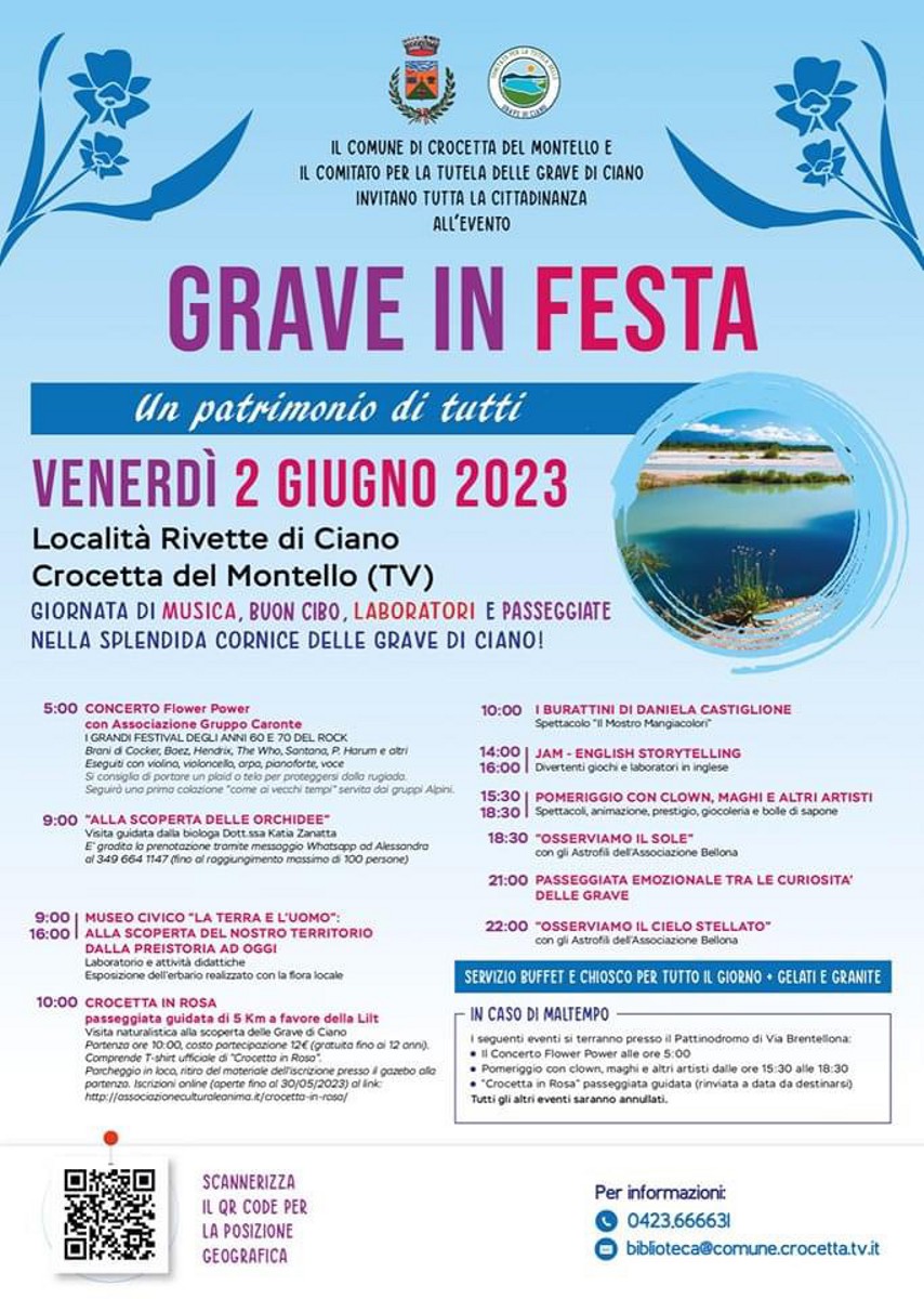 Il Comune di Crocetta del Montello ed il Comitato per la tutela delle Grave di Ciano invitano la cittadinanza alle Grave di festa 2023.