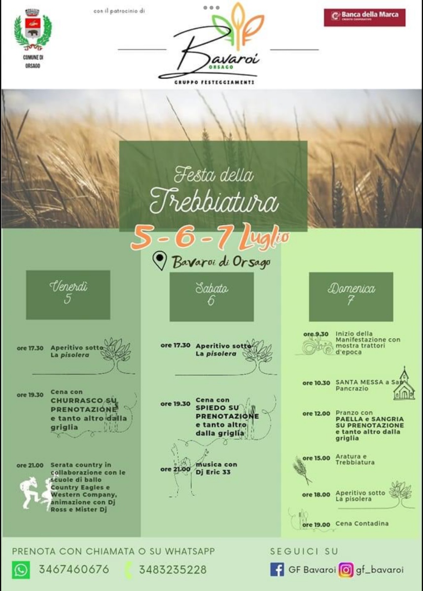 Il Gruppo Festeggiamenti Bavaroi, con il patrocinio del Comune di Orsago ha organizzato la Festa della Trebbiatura 2024.
