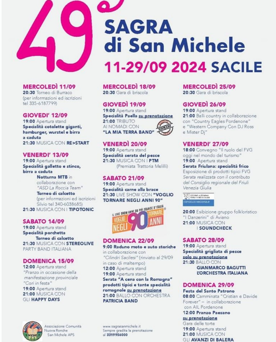 L’Associazione Comunità Nuova Ronche San Michele APS ha organizzato la 49ª Sagra San Michele di Sacile.