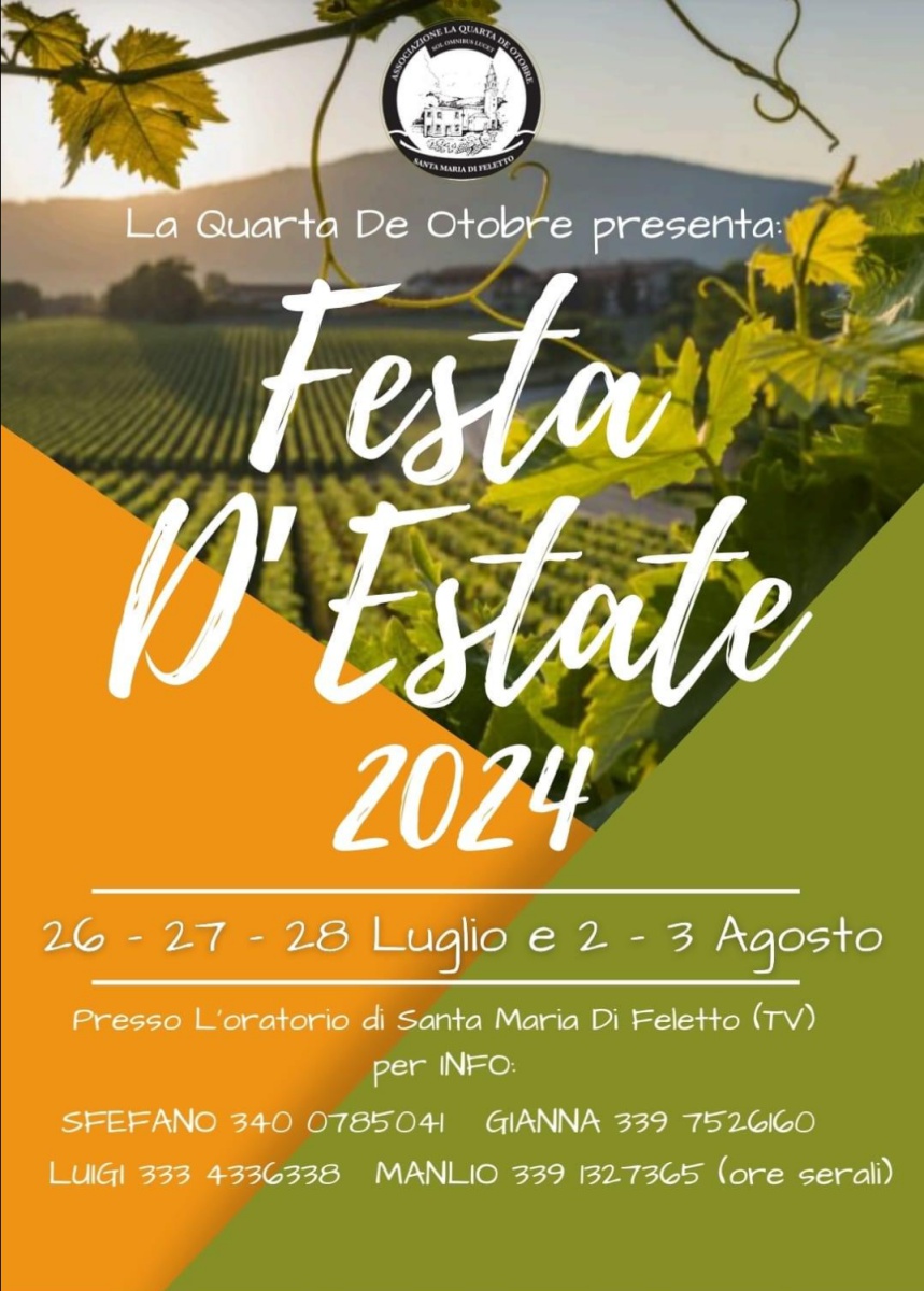 La Festa d’Estate si terrà dal 26 luglio al 3 agosto 2024 presso l’Oratorio di Santa Maria di Feletto.