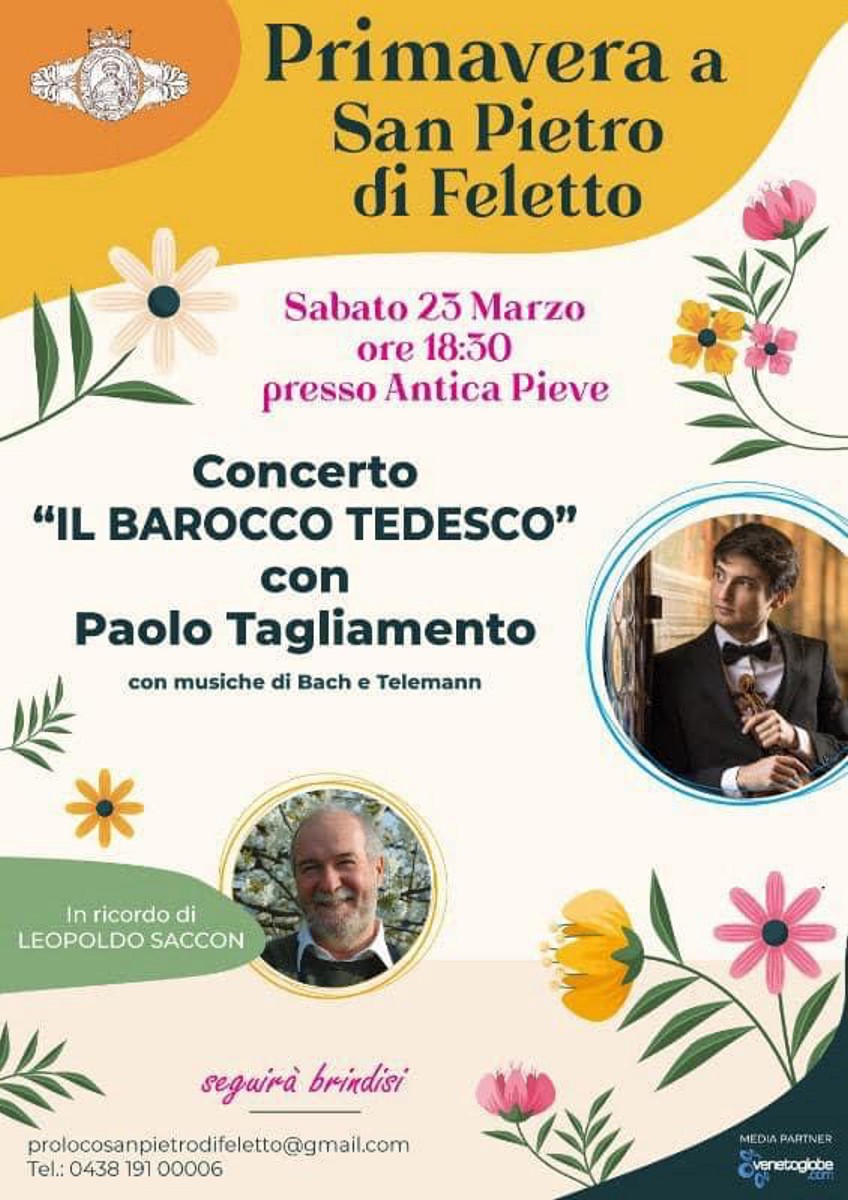 - ore 18.30 Concerto il Barocco Tedesco con Paolo Tagliamento con musiche di Bach e Telemann