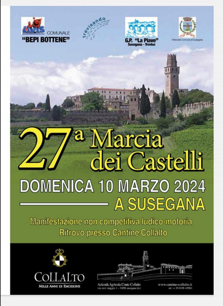 L’Avis Comunale Susegana Bepi Bottene con la collaborazione di G.P. La Piave e dell’Associazione Trevisando con il patrocinio del Comune di Susegana ha organizzato la Marcia dei Castelli 2024.