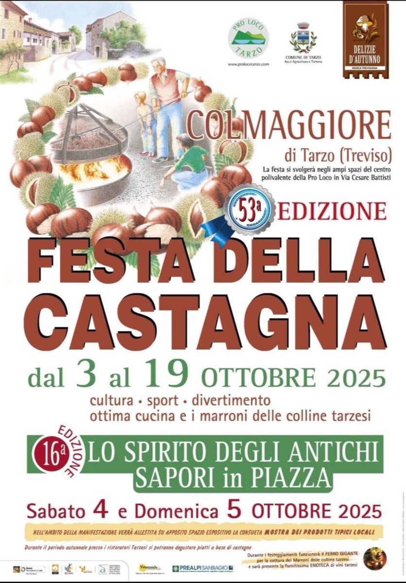 La 53ª Festa della Castagna a Colmaggiore di Tarzo si terrà dal 3 al 19 ottobre 2025.