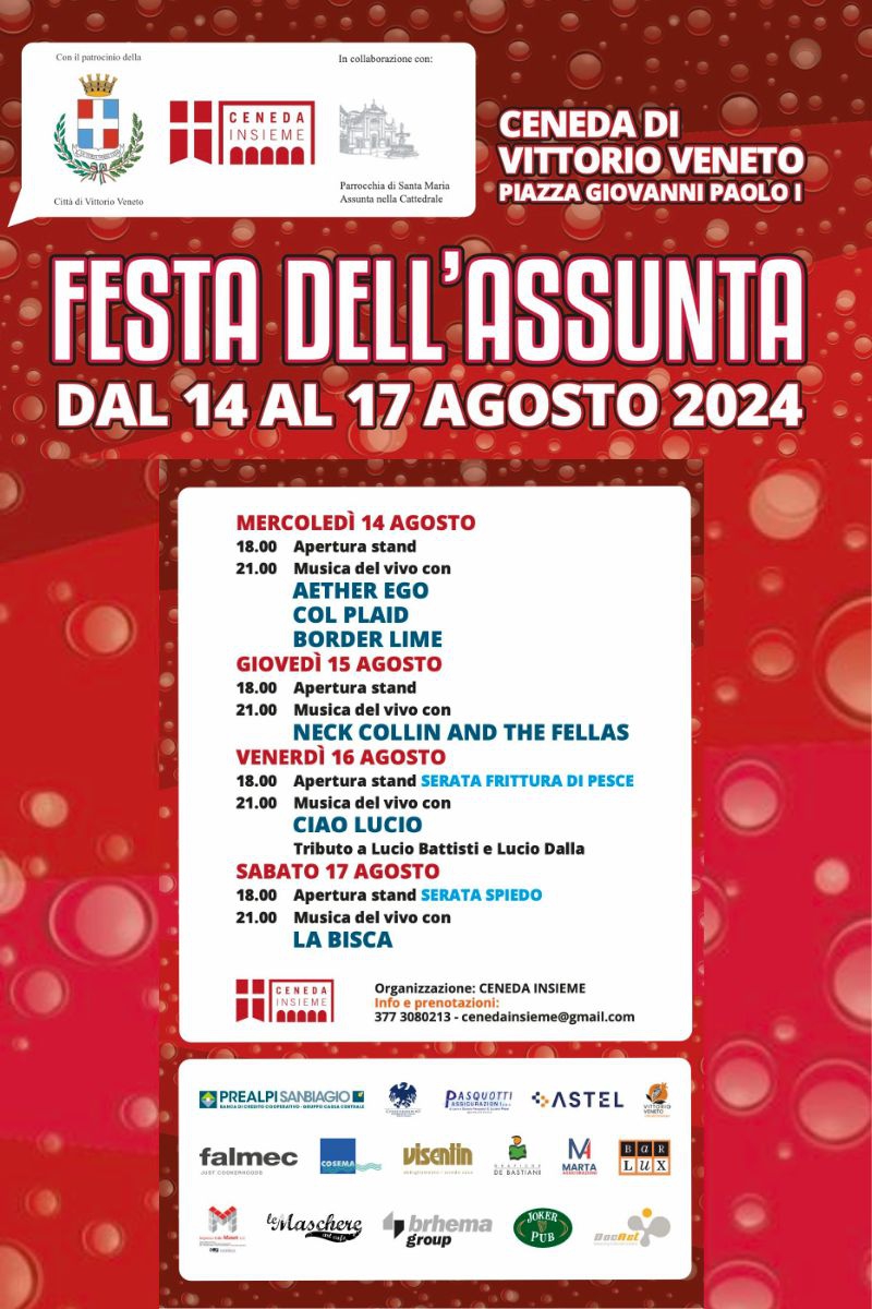 L’Associazione Ceneda Insieme con il patrocinio del Comune di Vittorio Veneto e con la collaborazione della Parrocchia di Santa Maria Assunta nella Cattedrale ha organizzato la Festa dell’Assunta 2024.