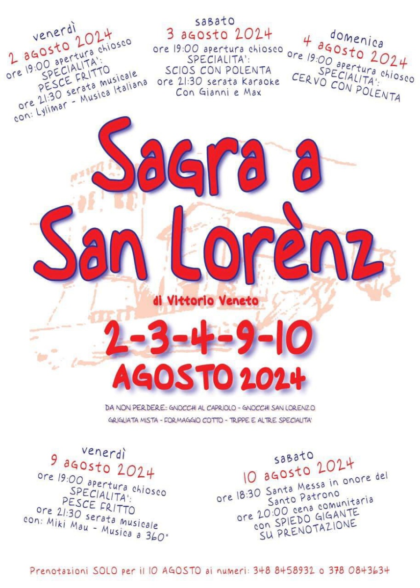 La Sagra a San Lorenz si terrà nei giorni 2-3-4-9-10 agosto 2024 a Vittorio Veneto.