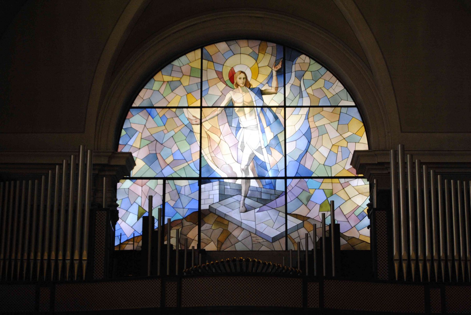 L’organo è a trasmissione elettrica, con consolle in cantoria avente due tastiere di 61 note ciascuna e pedaliera concavo-radiale di 32 note.