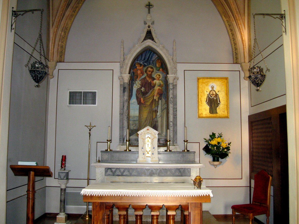 All’interno una bella pala del pittore Vittorio Casagrande di San Giacomo di Veglia Vittorio Veneto che raffigura San Giuseppe con il Bimbo Gesù in braccio.