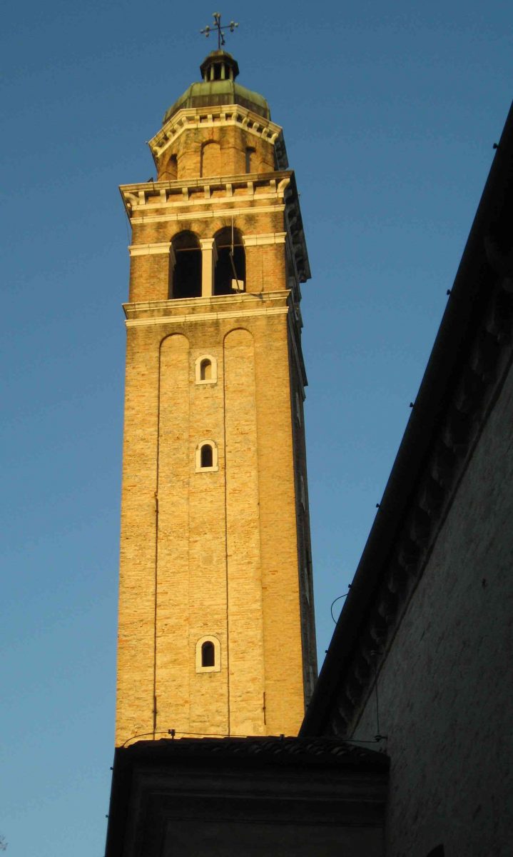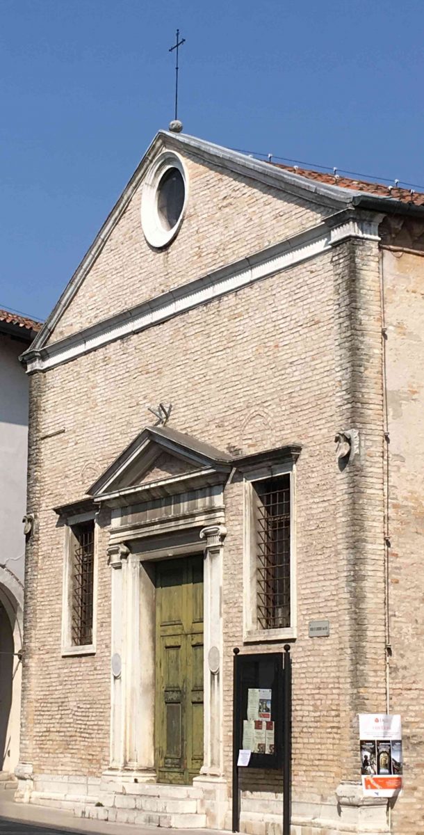 La chiesa di San Gregorio sorse nel borgo omonimo, sul luogo di una preesistente chiesetta voluta nel 1331 ed eretta nel 1345 dalla Congregazione dei Battuti a conforto degli ammalati del vicino ospedale. Intitolata dapprima a Santa Maria della Misericordia, quindi alla Madonna e a San Gregorio, poi dal 1437 solo a quest’ultimo, fu interamente rifatta ed ampliata nel 1514 su progetto di Bernardino da Portogruaro. Nel marzo del 1524 vennero consacrati l’altare maggiore dedicato a San Gregorio ed un altare laterale dedicato a San Rocco e San Sebastiano, come si evince dallo scritto sulla parete sinistra dell’abside.