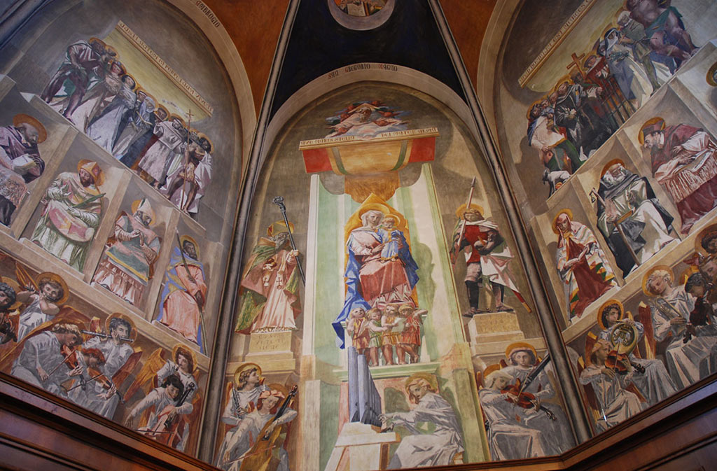 Gli affreschi, sicuramente emozionanti, sull’arco che porta al presbiterio, sull’abside e sulla volta sono del Casarini, che non è riuscito a completare tutte le sue opere in questo Duomo di San Nicolò. I dodici Apostoli e l’Annunciazione si trovano sull’arco di ingresso al presbiterio.