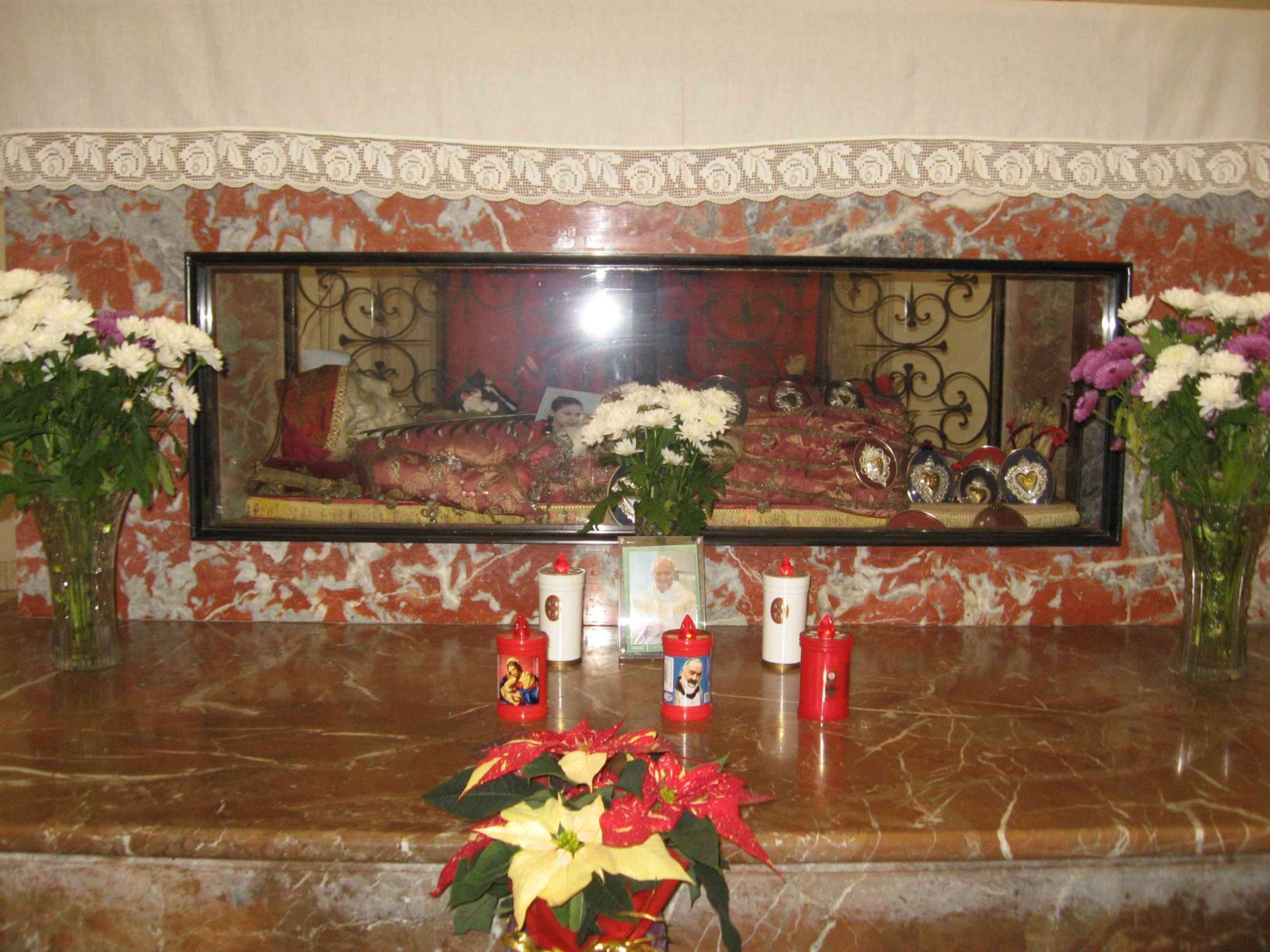 L’interno del tempio, completamente circolare, presenta nell’altare maggiore una teca in vetro dove sono conservate le spoglie del santo co-protettore della città: San Liberale.